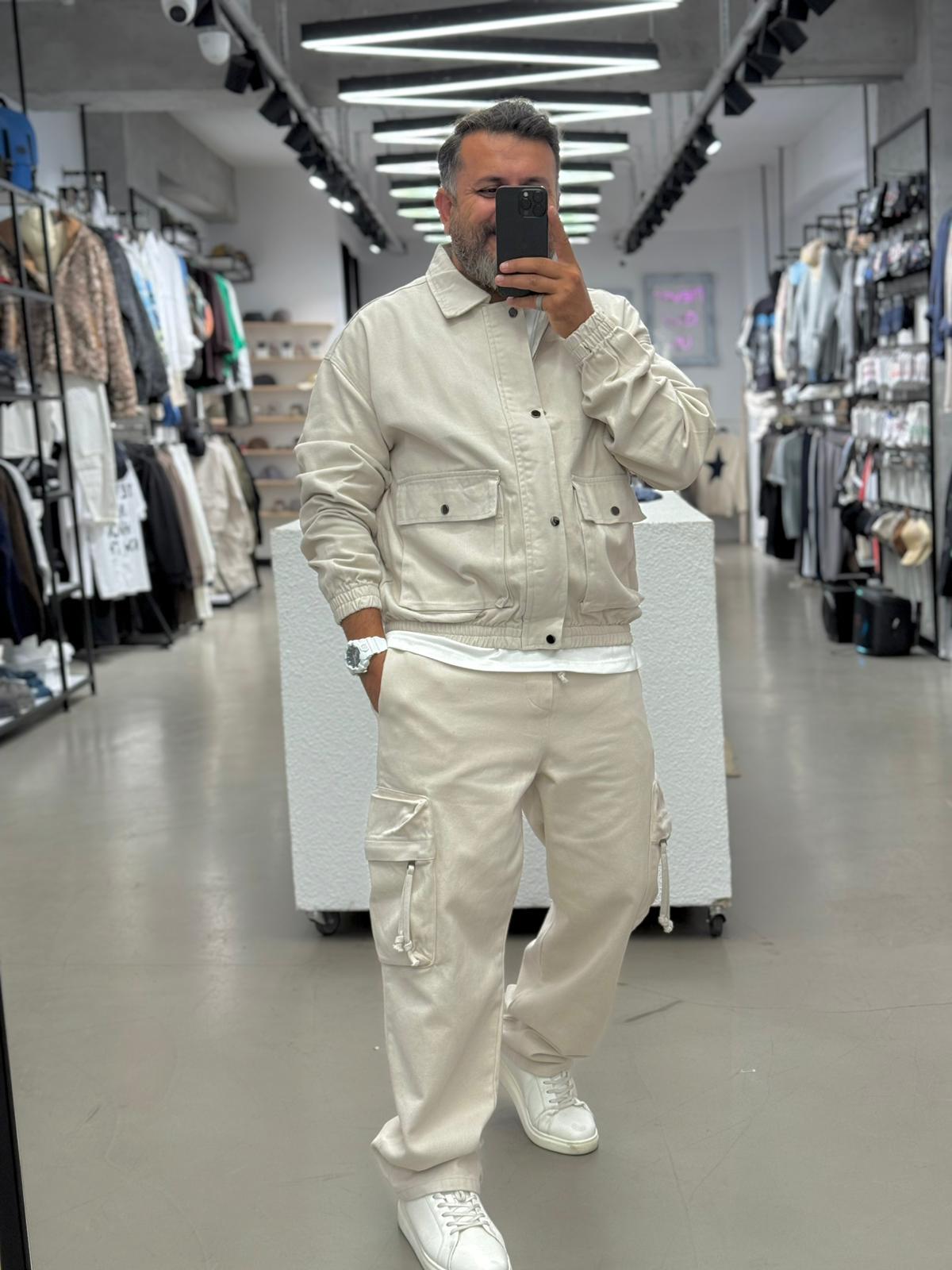 Gabardin Takım Baggy Kargo Cep Ceket Bej