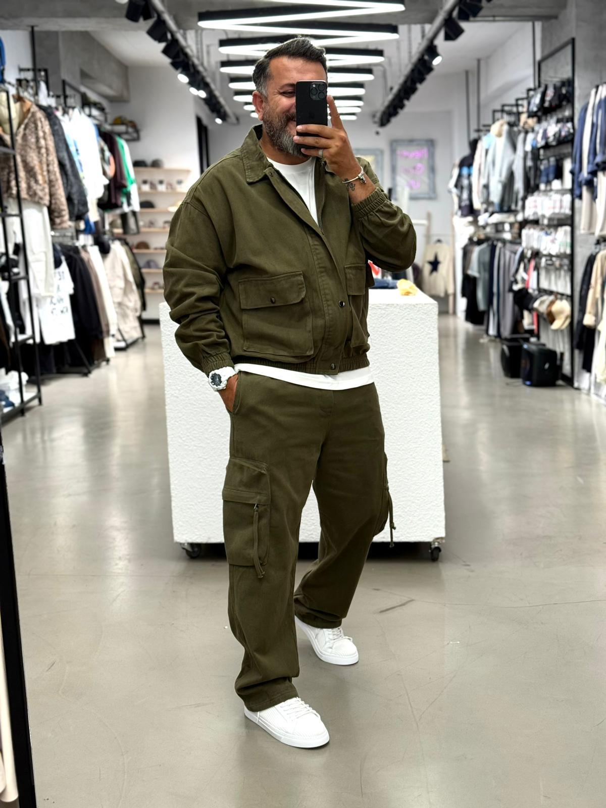 Gabardin Takım Baggy Kargo Cep Ceket Haki