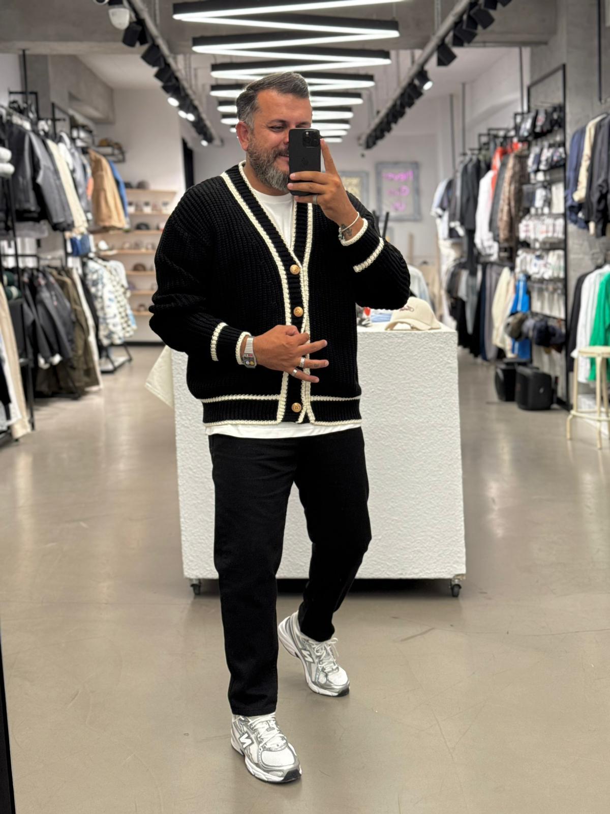 Gst Gold Düğme Detay Örme Hırka Siyah