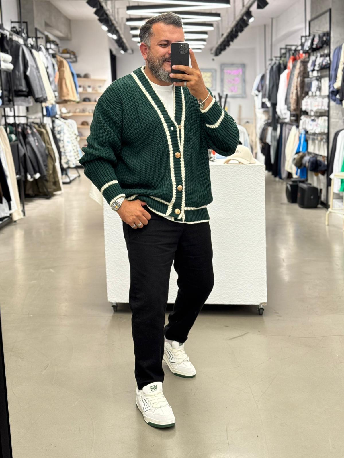 Gst Gold Düğme Detay Örme Hırka Yeşil