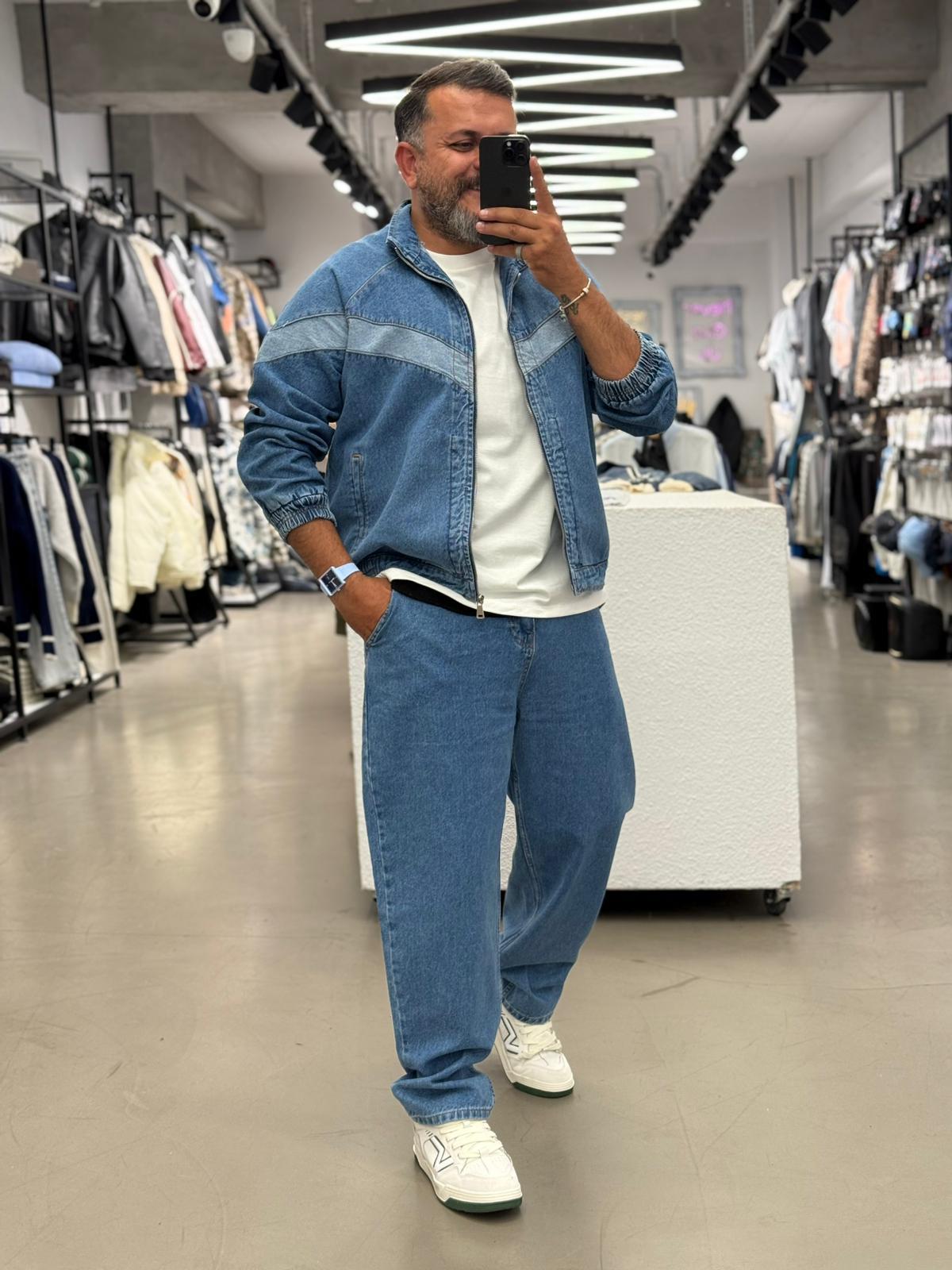 Kot Ceket Baggy Pantolon Takım Mavi