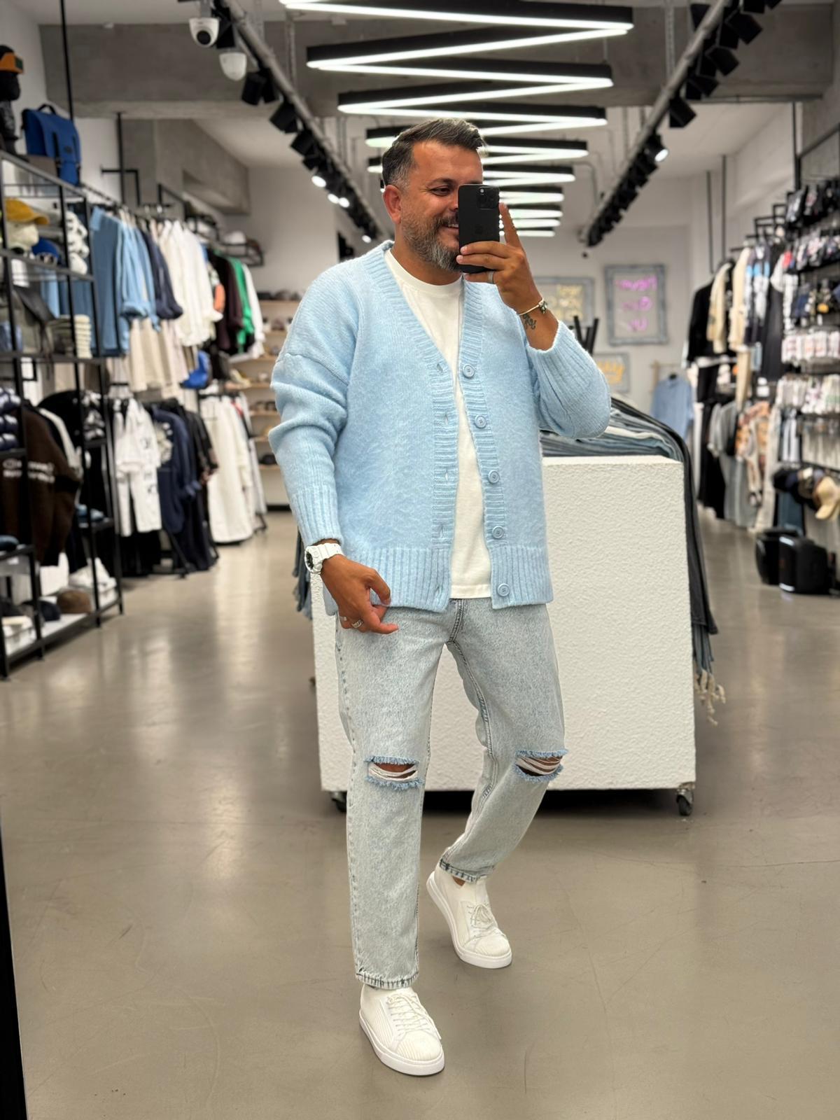 Pamuk basic Hırka Oversize Kalıp Mavi
